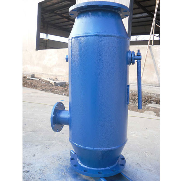 ●正常工作时:手动阀门处于全开状态,流体由设备进口法兰到达滤网内侧,流经滤网后流出设备出口法兰到达管路系统中,杂质等渣物被滤网截留下来,此时排污口关闭。